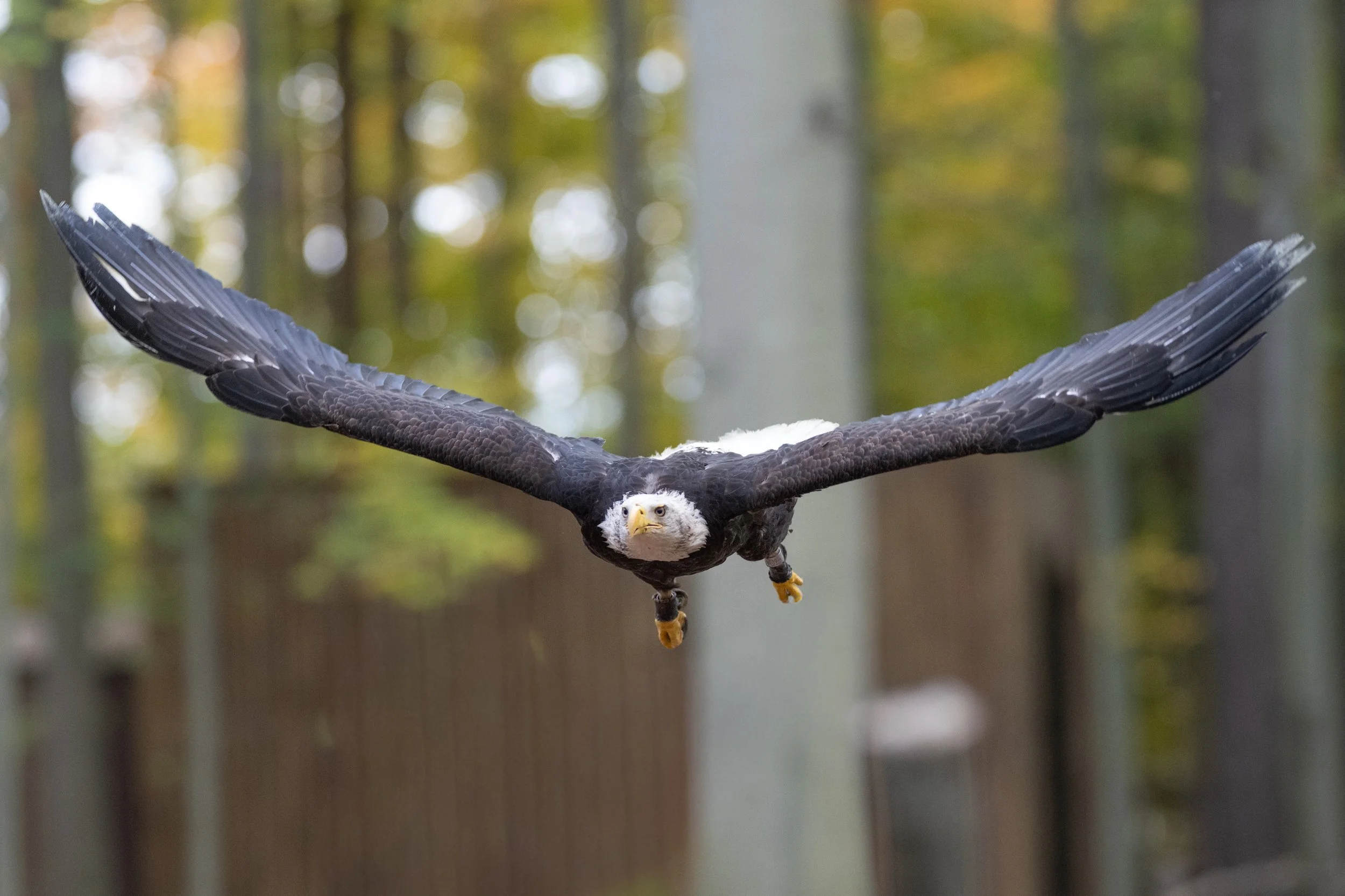 Pets are not permitted on the trails at Raptor Hallow. Service Animals are allowed on the Raptor Hallow Trail but will not be able to go into the flights of wonder bird show. This is for the safety of the service animal and our birds.